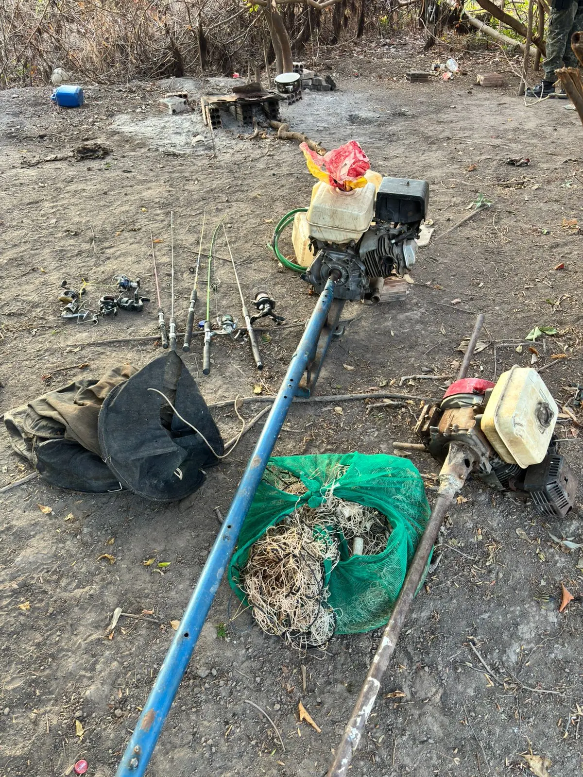 apreendidos dois barcos, dois motores, uma rede de arrasto utilizada para pesca