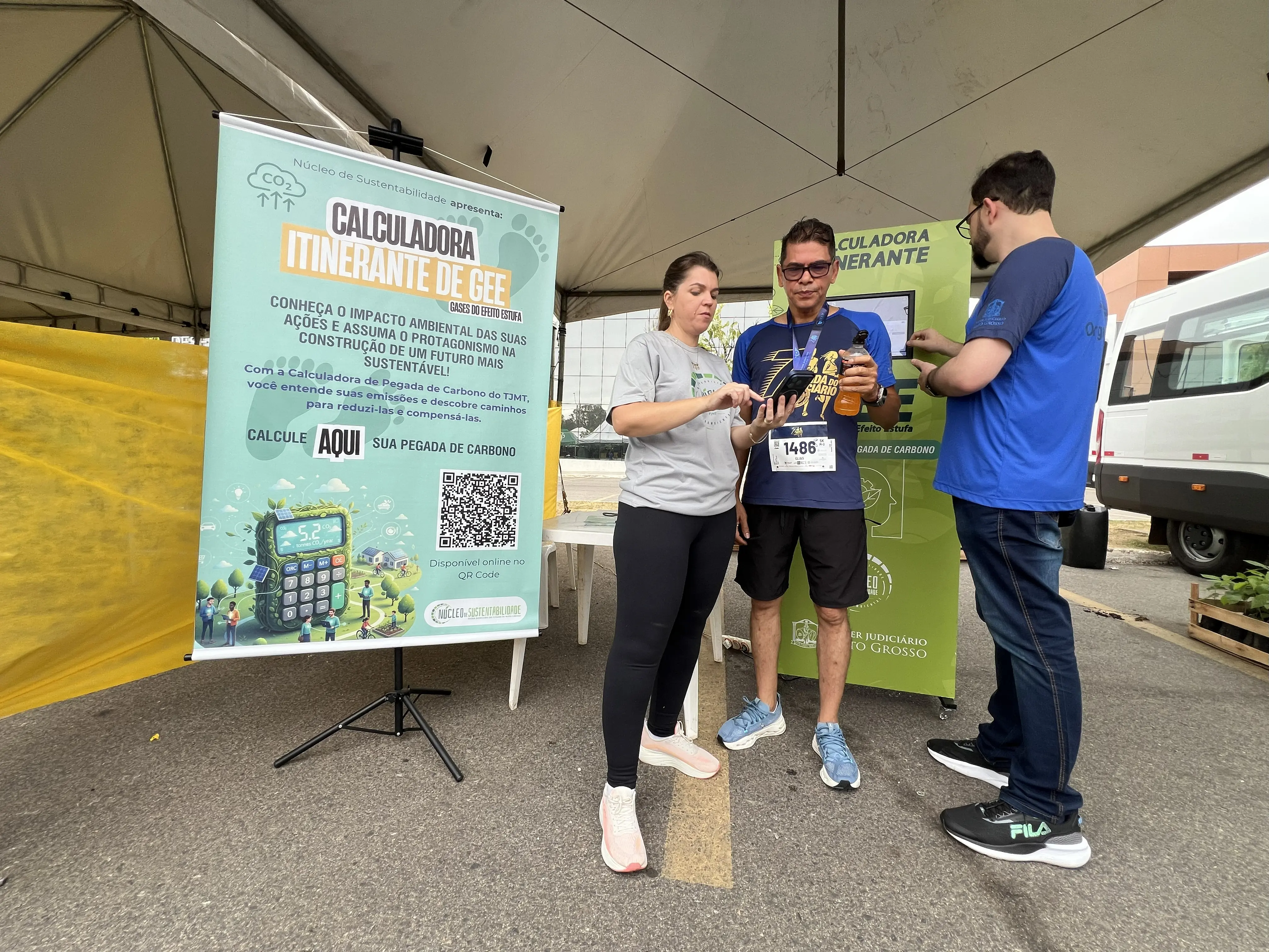 A 7ª edição da Corrida do Judiciário trouxe aos participantes uma nova forma de medir o impacto das próprias pegadas, e não apenas as esportivas. O estande da Calculadora Itinerante de Compensação de Gases de Efeito Estufa (GEE) atraiu dezenas de corredores curiosos para descobrir o quanto suas rotinas contribuem para as emissões de carbono e, principalmente, o que podem fazer para compensar esse impacto.A iniciativa foi promovida pelo Núcleo de Sustentabilidade do Tribunal de Justiça de Mato Grosso (TJMT), coordenado pelo Desembargador Rodrigo Roberto Curvo, que levou a ferramenta ao evento com o objetivo de despertar a consciência ambiental de forma simples e interativa.