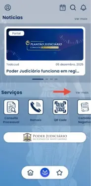 Passo 1: Na tela inicial do TodoJud, cliquem em “ver mais” para expandir os serviços.