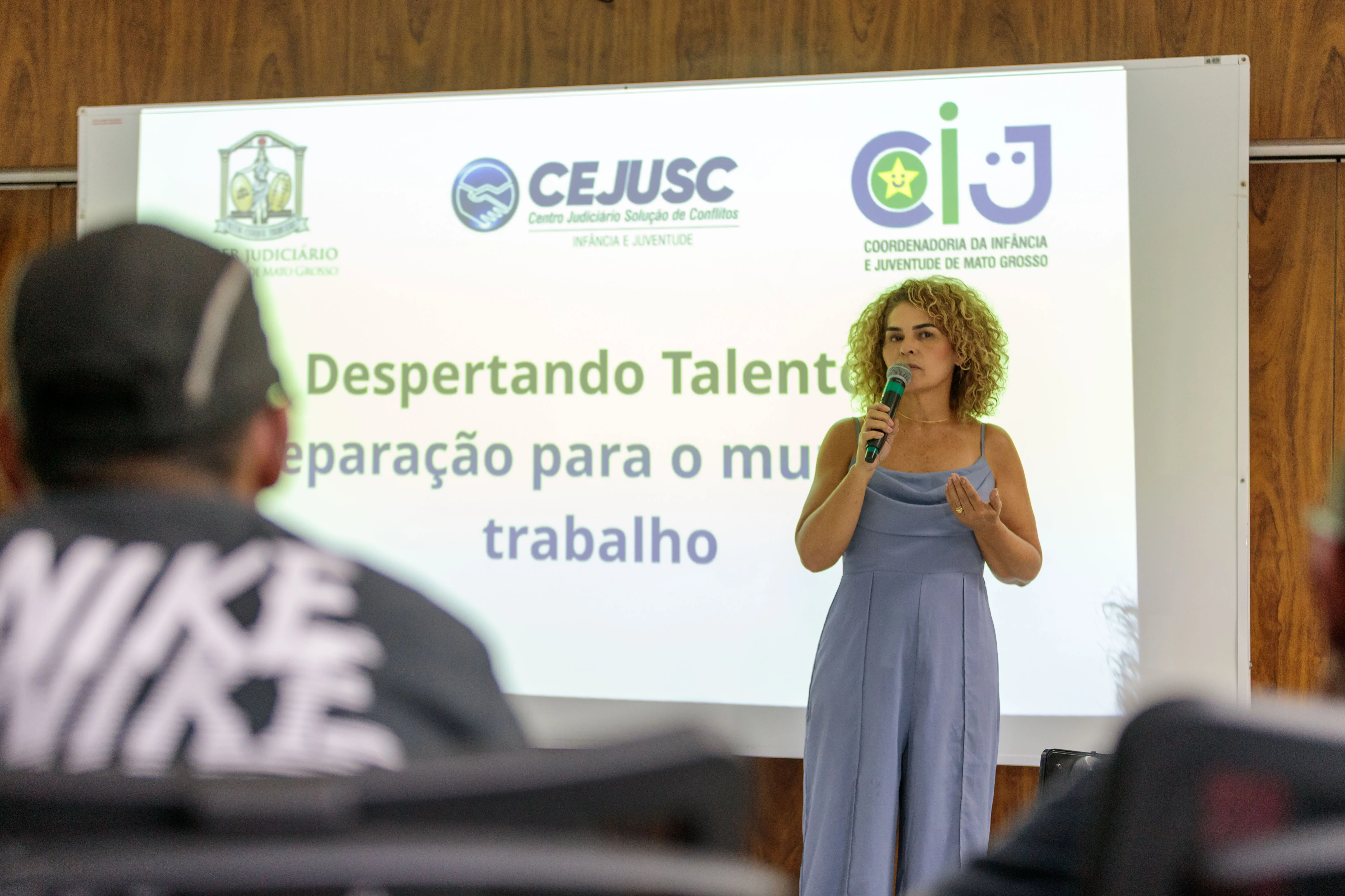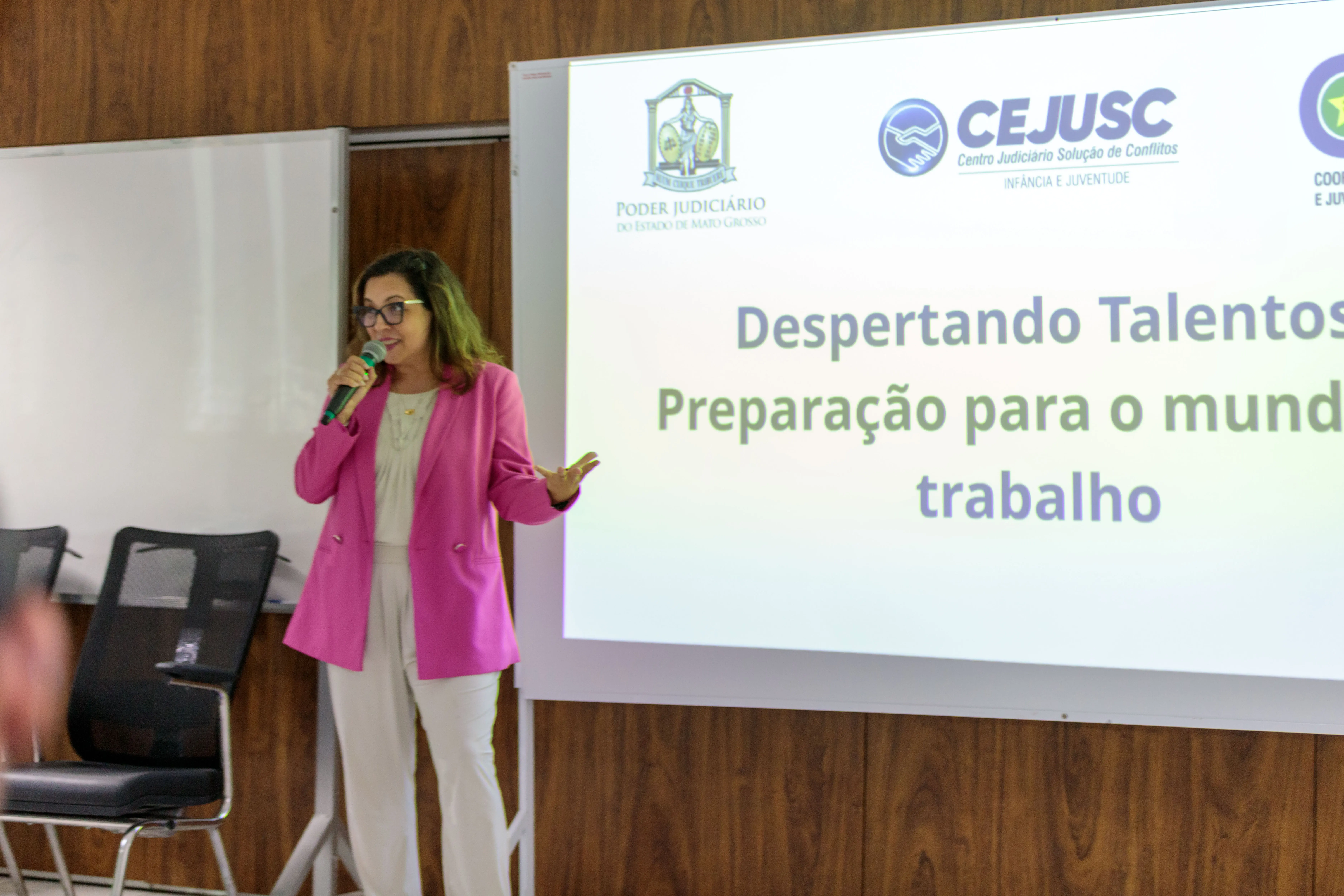 Juliana Kido, gestora do Cejusc da Infância e Juventude, é a palestrante do projeto e aborda temas como pontualidade, higiene e vestimenta, além de outras boas práticas no ambiente de trabalho. "São informações que, para nós, são básicas, mas que para eles nunca ninguém ensinou. Buscamos transmitir essas informações de forma dinâmica, com fotos e exemplos, para que eles realmente entendam", afirma Juliana.