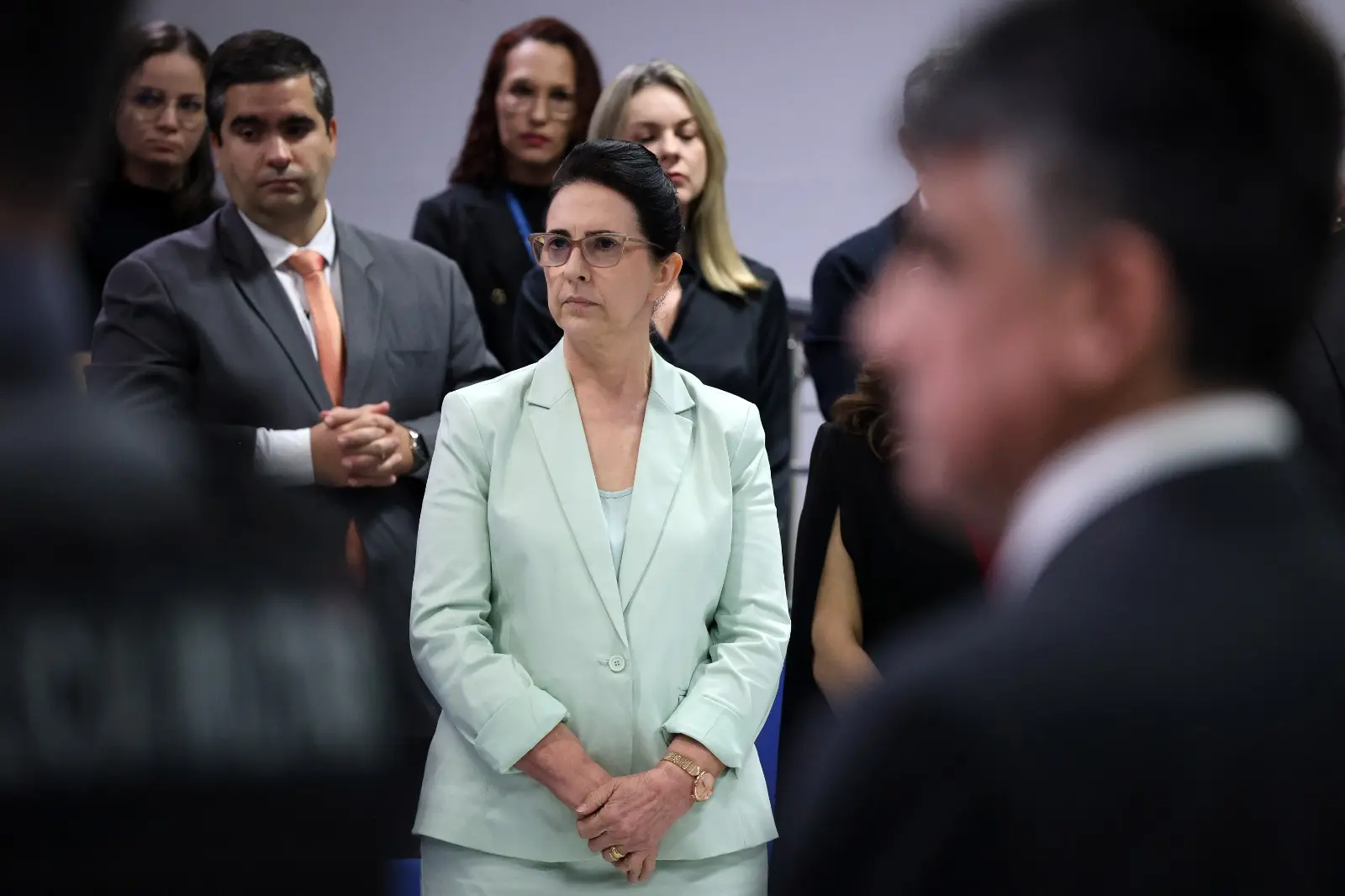 com os magistrados e servidores saindo dos gabinetes e indo ao encontro do